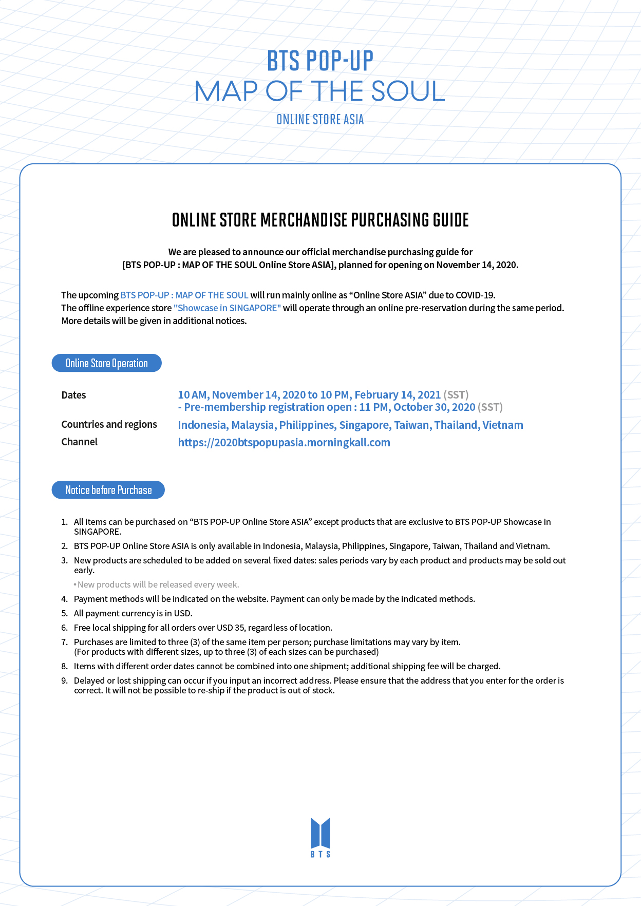 Morningkall On Twitter Bts Pop Up Map Of The Soul Online Store Asia Guest Information Purchasing Guide Https T Co Ag3jhgt4mg Countries And Regions Indonesia Malaysia Philippines Singapore Taiwan Thailand Vietnam Pre Sign Up